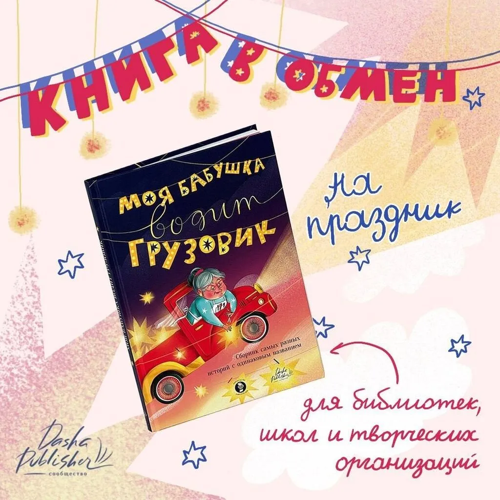 Сегодня в Детской библиотеке с воспитанниками Дошкольного отделения «Искорка» (воспитатель Назарова В. А.) мы познакомились с замечательной книгой, сборником рассказов, стихов и комиксов с необычным названием «Моя бабушка водит грузовик». Это добрая, позитивная книга о разных бабушках, которые не только рассказывают сказки и пекут пирожки, но и любят путешествовать на своих милых грузовичках и помогать своим внукам и всем людям. Эту книгу прислала нам дружная команда замечательных авторов «Сообщества DashaPublisher”.