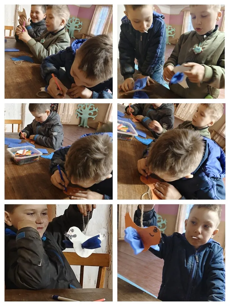 А в конце, участников мероприятия ждал увлекательный мастер- класс "Птица". Каждый из картона и цветной бумаги сделал себе птичку .